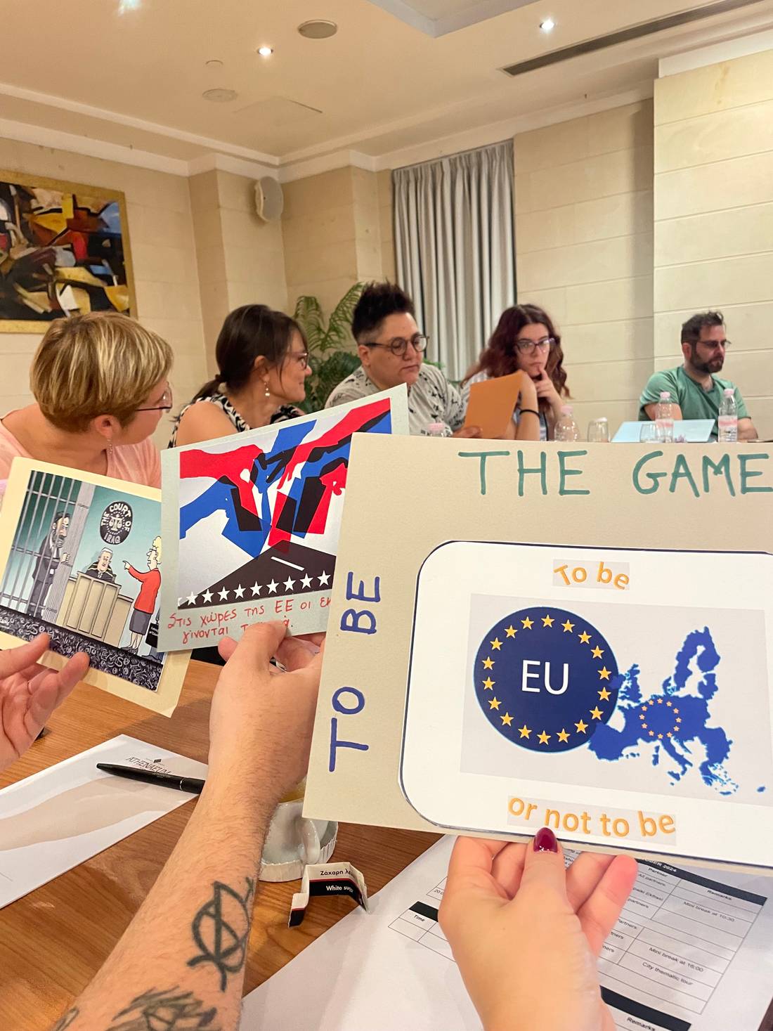 Η Ευρωπαϊκή Έκφραση παρουσίασε όλες τις διαδικασίες που περιλαμβάνονται στα εθνικά εργατήρια, ανέλυσε όλα τα βήματα που απαιτούνται για την υλοποίηση ενός εργαστηρίου και δόθηκε μεγάλη έμφαση στο πώς ένα εργαστήριο μπορεί να είναι επιτυχημένο. Όλοι οι εταίροι συμμετείχαν ισότιμα στη συζήτηση και παρουσίασαν τη μεθοδολογία που χρησιμοποιούν στα εθνικά εργαστήρια που πραγματοποιούν στις χώρες τους.